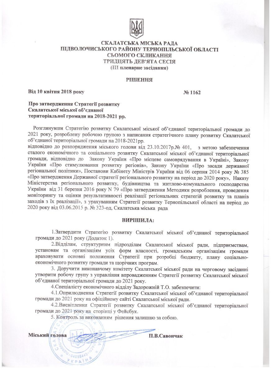 Стратегія розвитку Скалатської ОТГ на 2018-2021 рр.