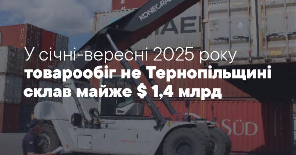 За дев’ять місяців 2025 року загальний товарообіг на Тернопільщині склав майже 1,4 млрд дол. США.