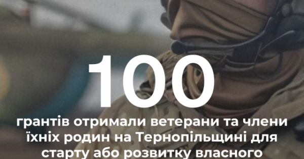 Додатково: Тернопільська обласна військова адміністрація підтримує ветеранів, які отримали гранти на суму від 500 тис. до 1 млн грн, відшкодовуючи 50% власного внеску співфінансування (до 100 тис. грн). Цією можливістю вже скористалися троє учасників бойових дій.