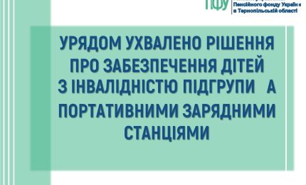 УРЯДОМ УХВАЛЕНО РІШЕННЯ ПРО ЗАБЕЗПЕЧЕННЯ ДІТЕЙ З ІНВАЛІДНІСТЮ ПІДГРУПИ А ПОРТАТИВНИМИ ЗАРЯДНИМИ СТАНЦІЯМИ