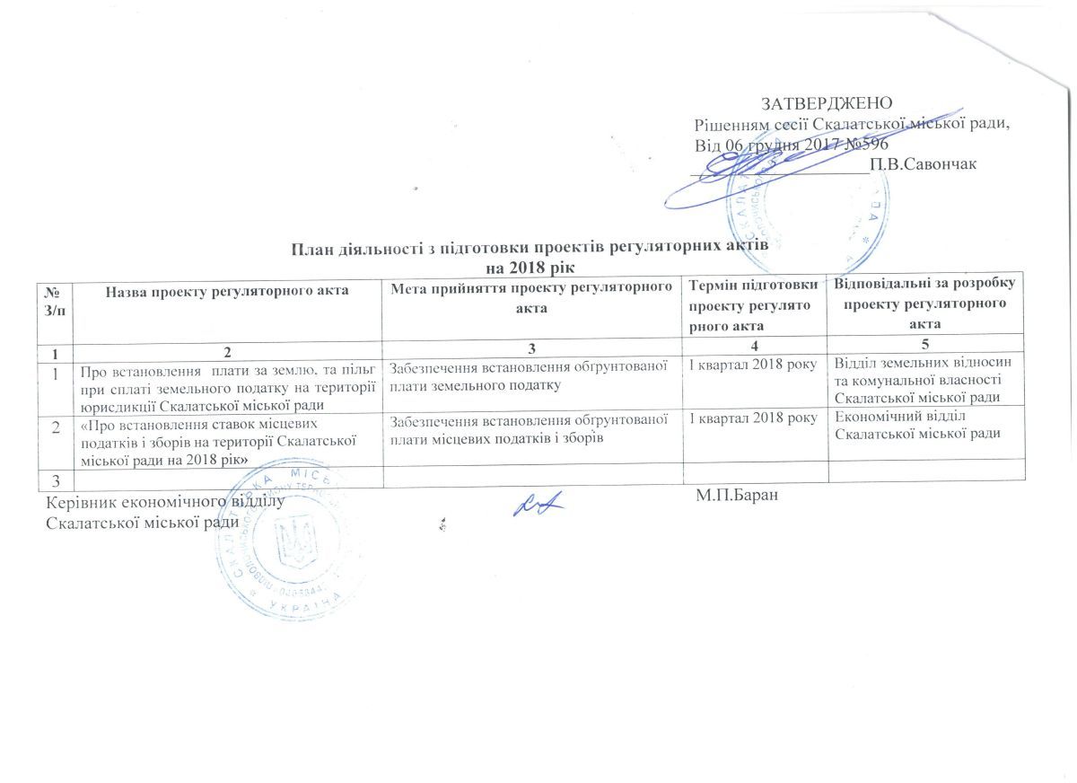 План діяльності з підготовки проектів регуляторних актів на 2018 рік