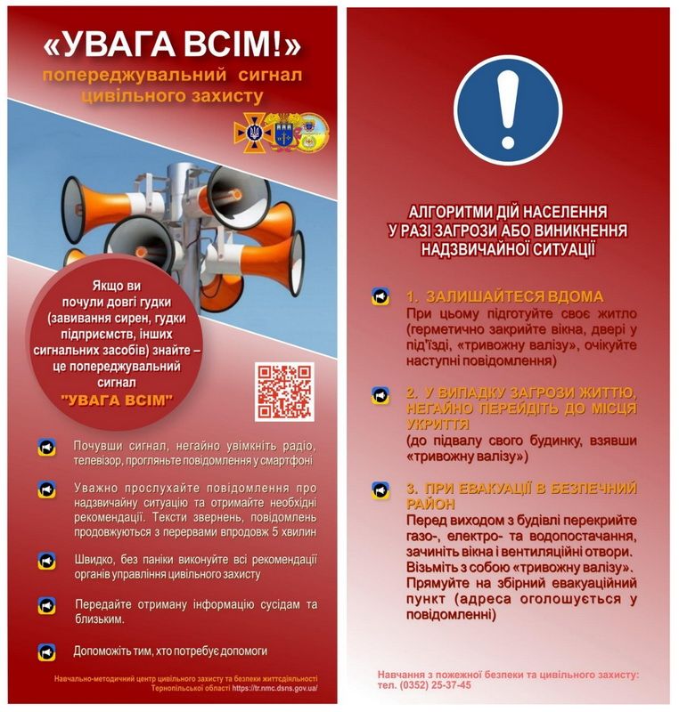 Слід пам’ятати, що життя кожної людини багато в чому залежить від правильних дій у разі загрози виникнення або виникнення надзвичайної ситуації, правил поведінки за попереджувальним сигналом цивільного захисту «УВАГА ВСІМ!».